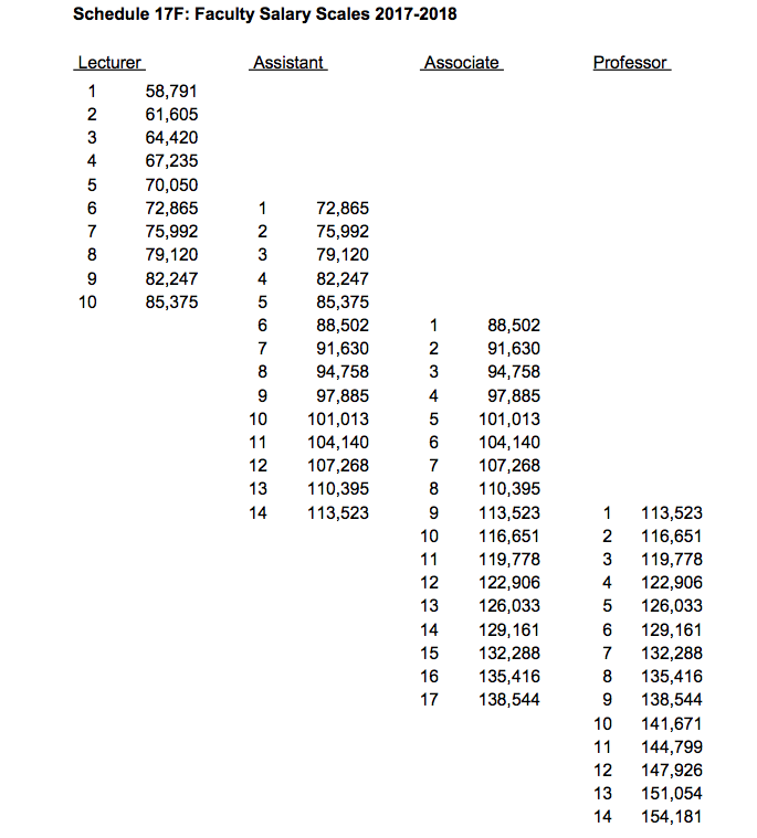 “New full-time professors are generally appointed at the rank of Assistant Professor, towards the bottom of the salary scale for this rank,” Lilburn writes. “Each year, they move one step up the scale. Based on the current salary scales, it may take 12 – 15 years for a full-time professor to reach the average salary cited by StatsCan.”